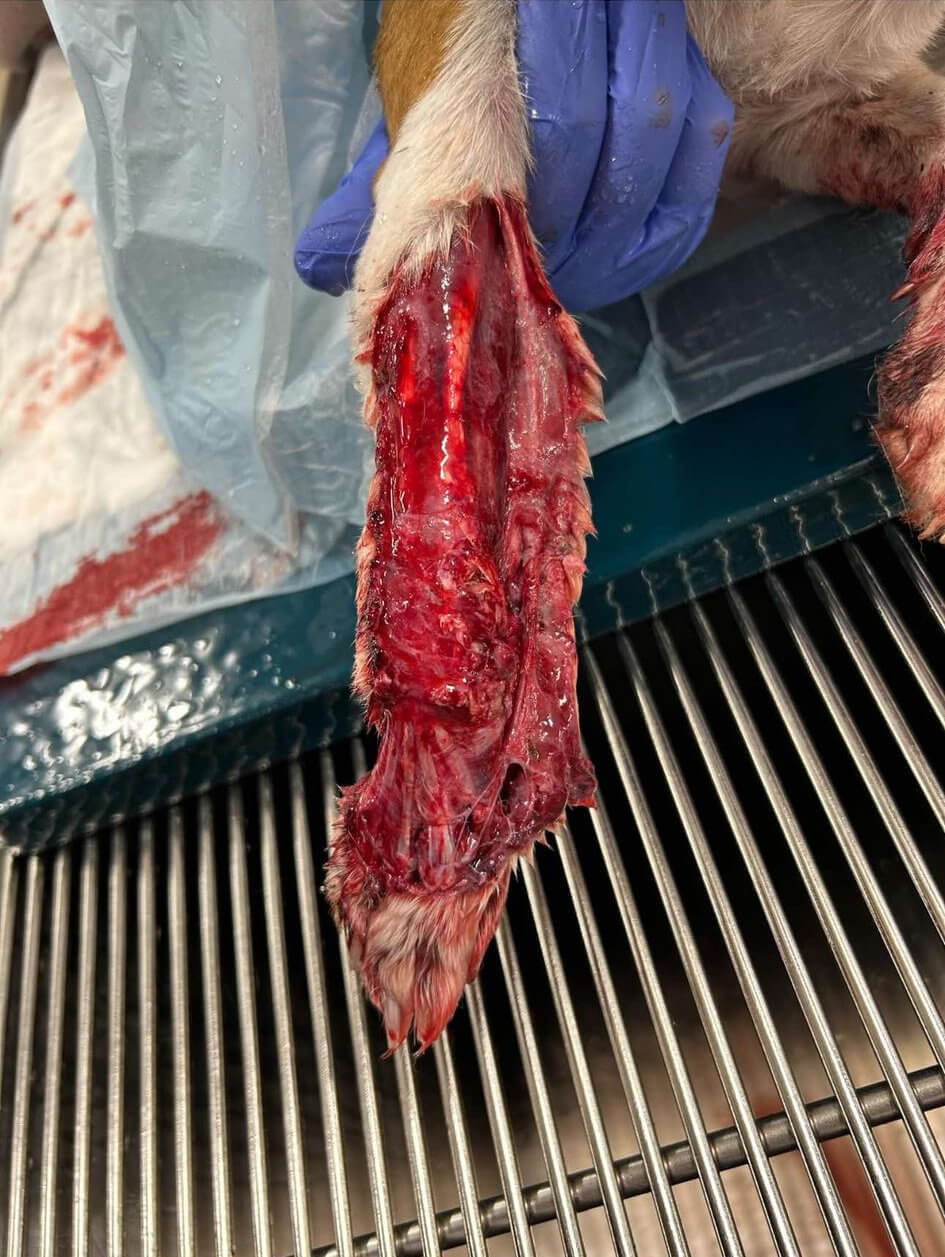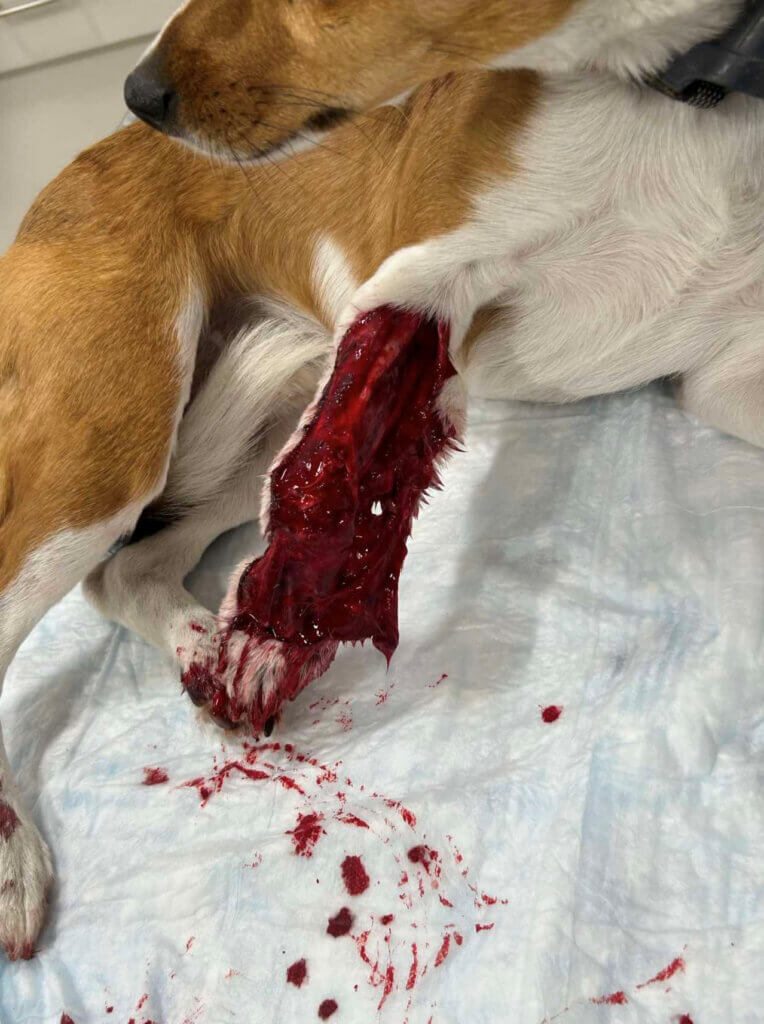 The priority now is emergency surgery to remove them before a life-threatening infection sets in. The doctors have managed to pull part of them out, and we are so very grateful she is in the best hands possible.
