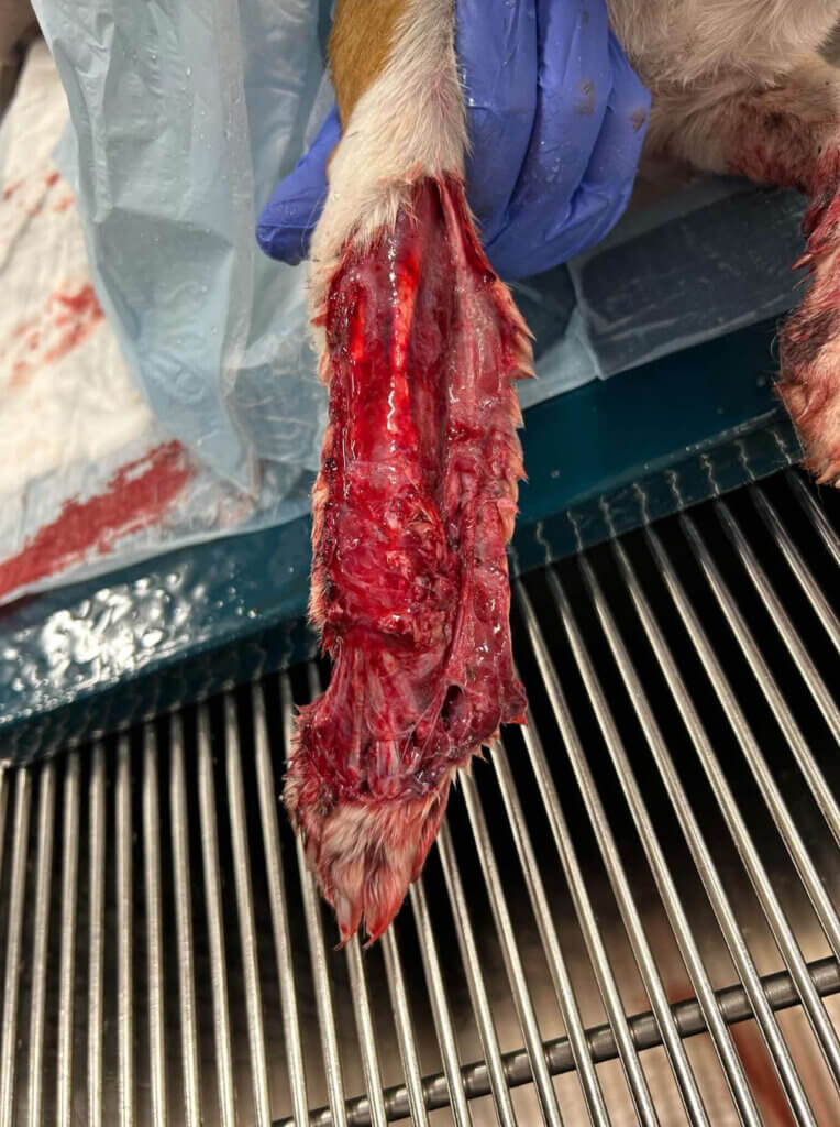 His journey is far from over, but he’s meeting all our expectations. The recovery will be a long process, especially with the ongoing issues with his foot. The wound continues to ooze, and if it doesn’t start to heal soon, he may need to have a toe or two amputated. His paw is raw from the fluid, so we’re sending all our prayers for healing.