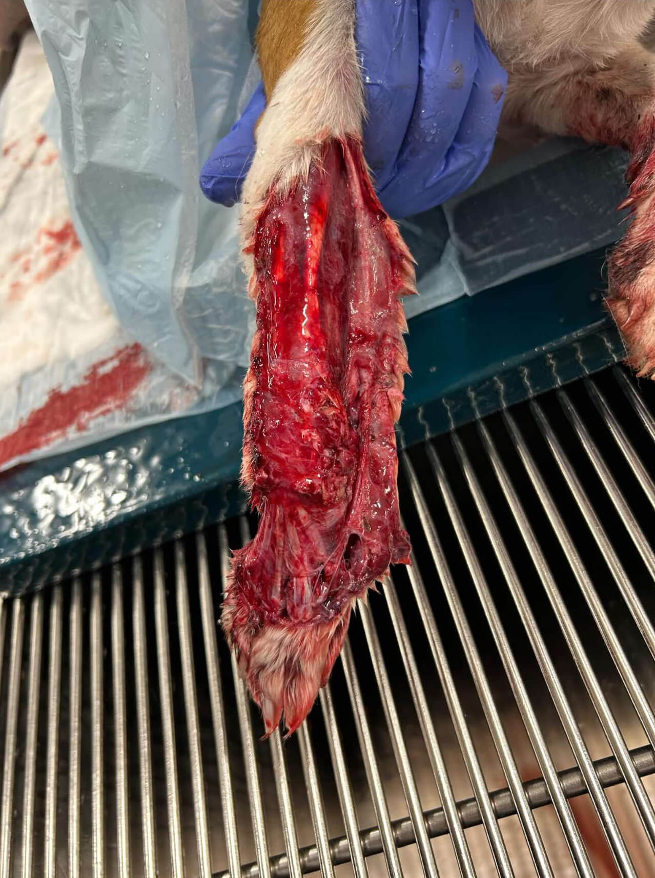 We just spoke with our amazing surgeon, Dr. Millard. And our brave boy’s white blood cell count has significantly dropped from 87,000 to 50,000, which is a huge improvement! This means his body is responding and working to heal. His hematocrit, which measures the percentage of red blood cells in his blood, is at 16 (down from 17), but we’re relieved it hasn’t dropped further. It’s a small sign of stability. Even better, his phosphorus levels and electrolytes—essential minerals for his body’s function—are looking good and staying steady. He’s getting nutrients through a feeding tube, and they’re gradually increasing his intake to help him regain strength. The vet team and staff are loving him JUST like their own. ❤️